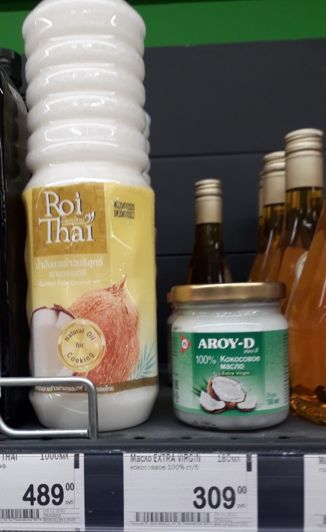 Сегодня я обнаружила в том же магазине 1 л бутылку Кокосового Масла, цена к-ой (500 р.) уже не так удручила после первой...