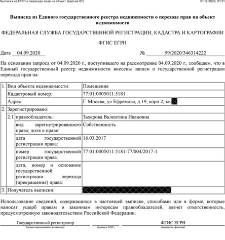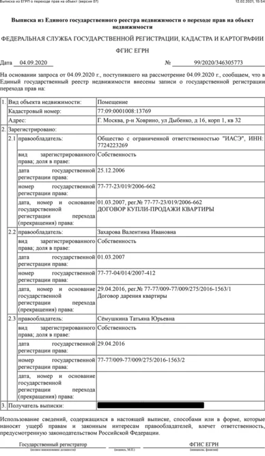 Одну из этих квартир в центре Москвы (в Фурманном переулке) Валентина Захарова выменяла в 2012 году у матери главы Росприроднадзора Светланы Радионовой (о которой в своем расследовании рассказал Алексей Навальный). Квартира оценивалась в 86 млн рублей. В 2017 году у матери замгенпрокурора эту квартиру купила Наталья Гудкова — жена Андрея Гудкова, чьи счета заморозили в Австралии.