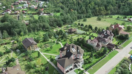 В Митрополье на 78-летнюю мать заместителя генерального прокурора зарегистрирован земельный участок размером 1360 кв. м. Почти всю его территорию занимает 4-этажный дом площадью 707 кв. м. Но взгляд на участок с высоты позволяет понять, что фактически территория загородной резиденции Захаровых гораздо больше. К дому примыкает еще один участок — площадью 2700 кв. м. И на нем — еще один дом, владельца которого Росреестр не показывает. У этих двух участков общий въезд, между домами проложены дорожки, а их территория огорожена единым забором.