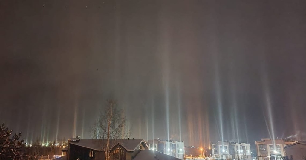 В небе над Ленобластью вновь засияли световые столбы - кристаллы льда, на которые падает свет.