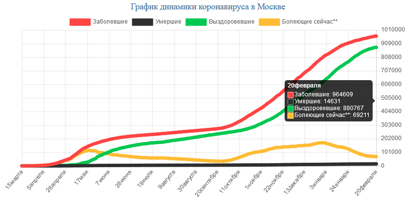 На сегодня, 20.02.2021, в Москве всего зарегистрировано: