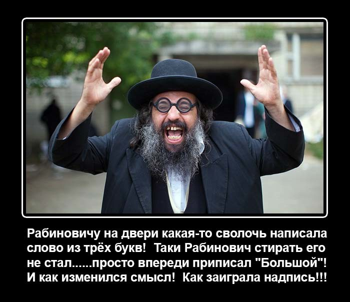 7. У входа в синагогу табличка: «Войти сюда с непокрытой головой — такой же грех, как прелюбодеяние». Ниже дописано: «Пробовал то и другое — разница колоссальная!».