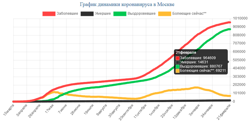 На сегодня, 21.02.2021, в Москве всего зарегистрировано: