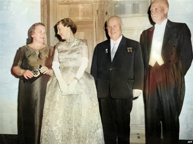 Слева направо: Жена Хрущева - Нина, жена Эйзенхауэра, Никита Хрущев и Дуайт Эйзенхауэр в Вашингтоне во время официального визита руководителя СССР в США. 16 сентября 1959 года.