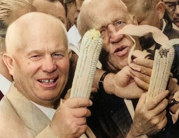 Шла «кукурузная эпопея», «мясная кампания», бились «молочные рекорды». Просто вал дезорганизующих мероприятий. Так, Хрущёв объявил кукурузу средством от всех бед сельского хозяйства, мол, кукуруза быстро решит проблему кормового зерна. С 1955 по 1962 годы её посевные площади были удвоены. Причём её сеяли даже в тех областях, где эта культура не подходила по климатическим условиям. Руководителей, которые не выполняли норму по кукурузе, снимали с должностей (виноват не климат, а руководитель!). Поэтому руководители, чтобы сохранить посты, бодро рапортовали об успехах, совершали приписки, шли на подлоги.