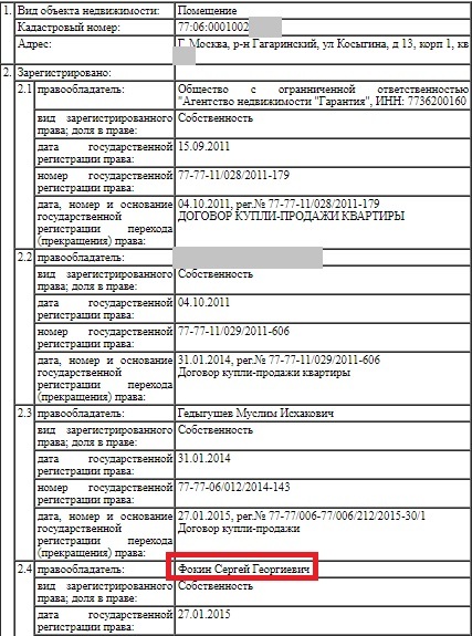 У вездесущего Фокина есть также имение в корпоративном поселке банка «Россия». Простому батискафному пилоту вместе с отцом принадлежит квартира в Петербурге на улице Танкиста Хрустицкого (104,5 кв.м.). Фокин-старший зарабатывает в структурах «Газпрома» около 30 миллионов в год и имеет, по данным издания "Метла", патриотический вид на жительство в Доминиканской Республике.