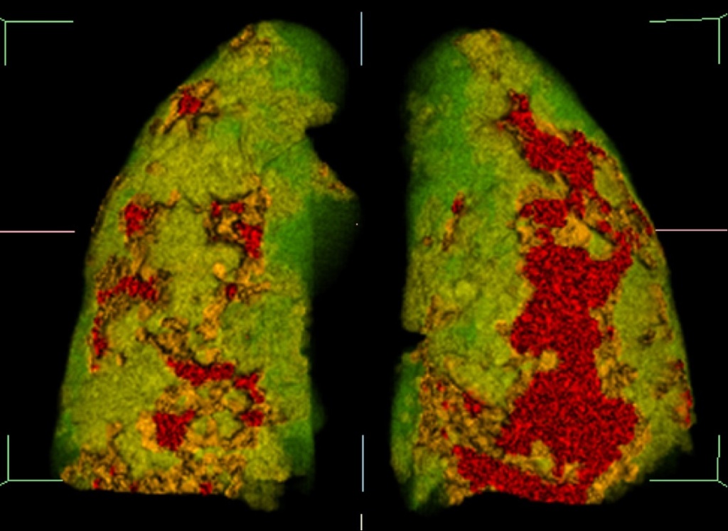КТ ("матовое стекло") указывает на площадь поражения, но не на его степень