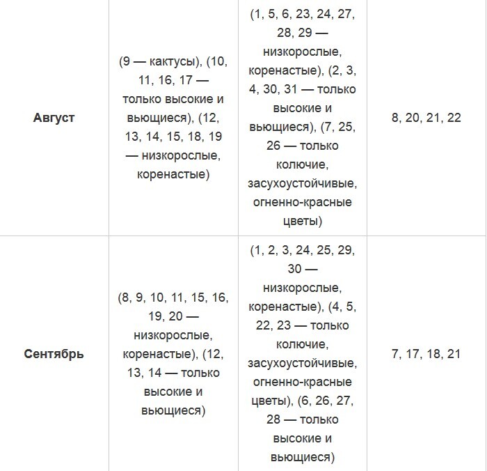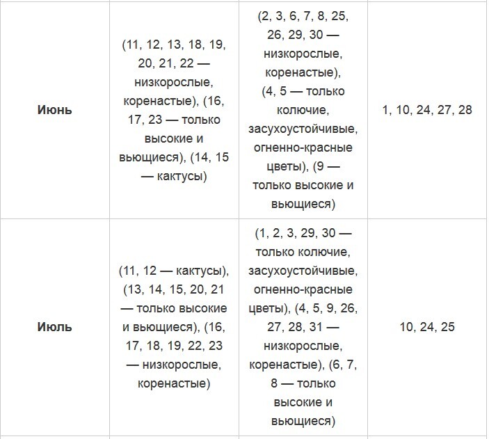 В лунном календаре отражена общая информация, которая поможет цветоводам определиться с днями пересадки растений. Также в нем выделены дни, которые плохо подходят для высадки любых растений.