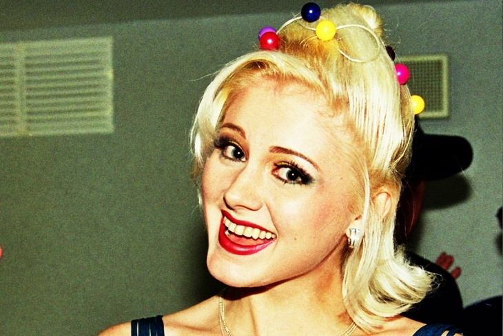 Для фотосессии исполнительнице хита «Ветер с моря дул» сделали эффектный макияж и покрасили светлые локоны в розовый цвет — в тон губам и нежным бутонам на голове.