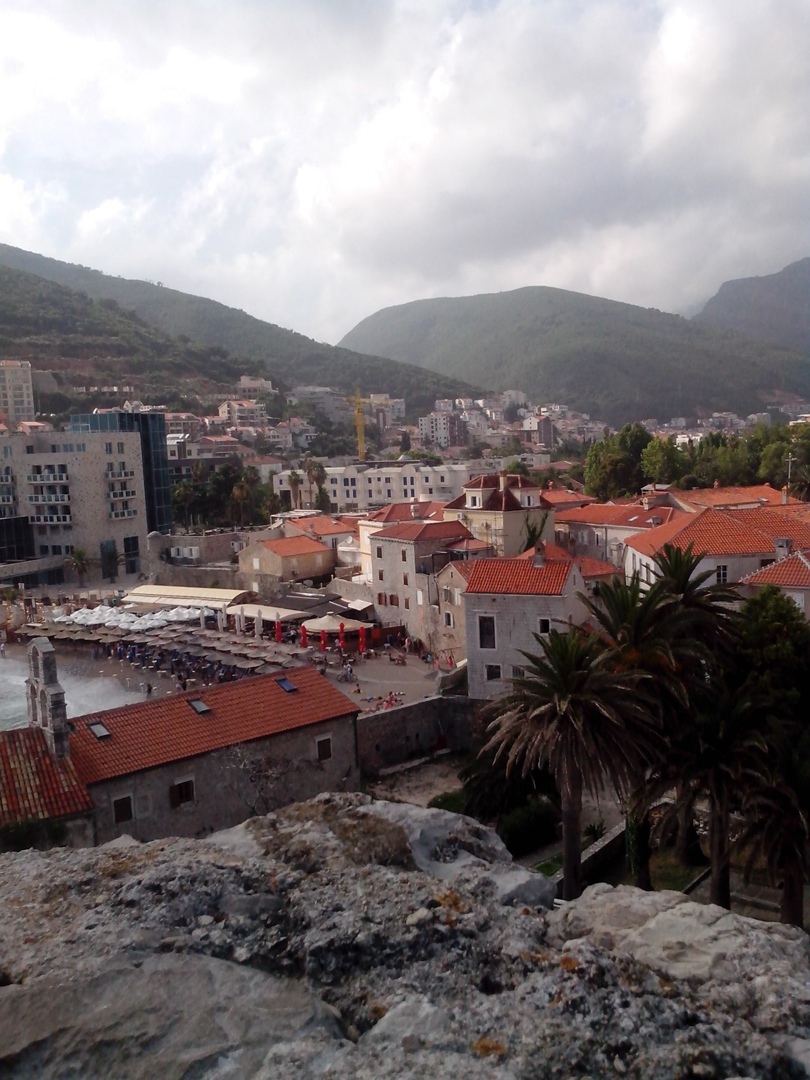 Жили мы в Будве, это самый известный курорт Черногории, вот фото со стены замка Старого города, слева здания из темного стекла и бетона — это наш отель.