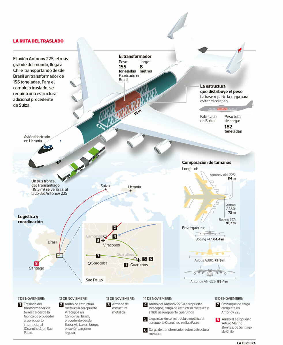 В ноябре 2016 года «Мрiя» перевезла из Сан-Паулу в Сантьяго (Чили) изготовленную в Бразилии компанией ABB электро-турбину весом 155 тонн, установленную в фюзеляже внутри специальной 27-тонной конструкции. Общий вес груза составил 182 тонны, что стало рекордом для Южной Америки.