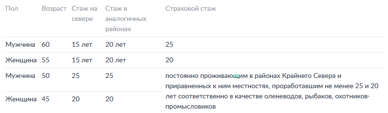 Северная пенсия для женщин и мужчин назначается не только в определенном возрасте, но и при соблюдении условий: