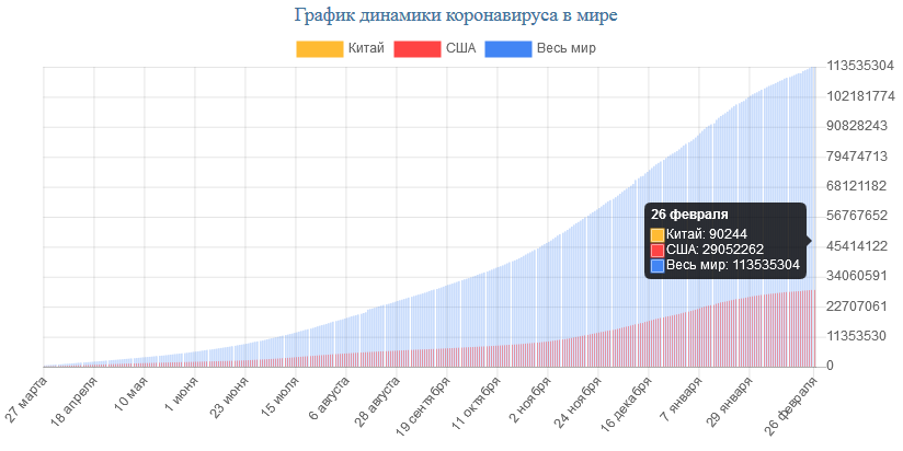 На сегодня, 26.02.2021, в мире всего зарегистрировано: