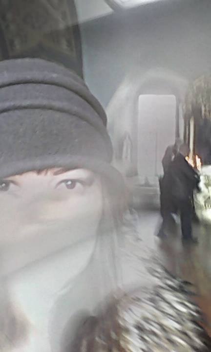 Посмотрите на две фотографии хрономеража. Там где я в церкви, возле шляпки светящийся образ человека. Это Бог, он видит всех и все на тысячелетия вперед. И недостойными политиками очень опечален.