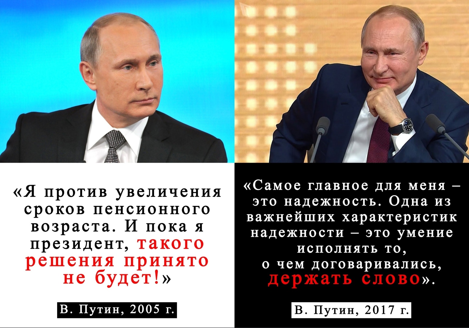 А Путин это который? Тот кто обещал, что пока он у власти никакого повышения пенсионного возраста не будет? Или не он?