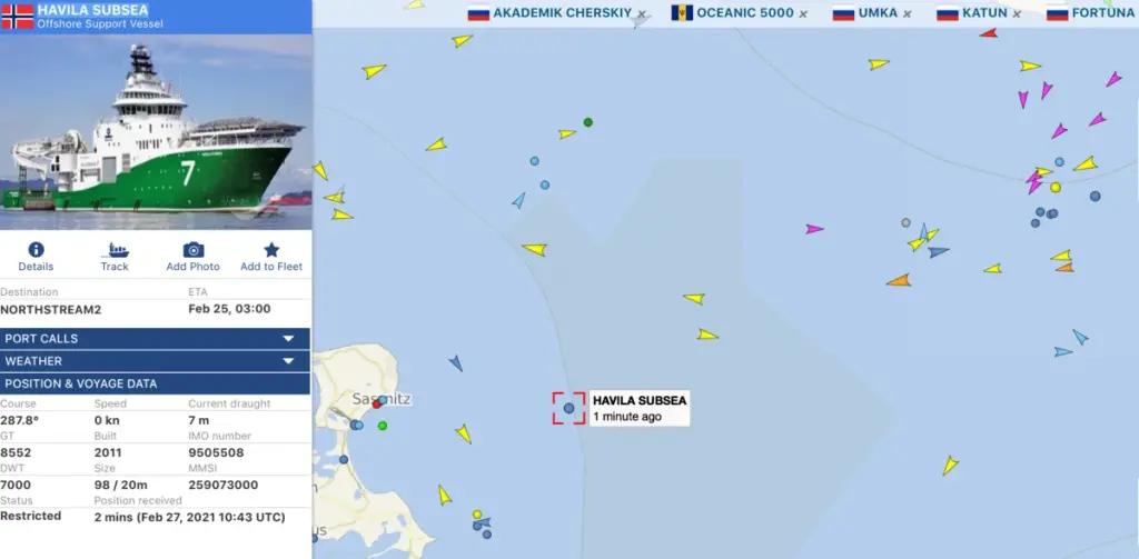 Ходят слухи, что еще одно судно должно подключиться к работам буквально со дня на день - HAVILA SUBSEA, если интересно, скажите об этом в комментариях и проведем подробный обзор этого корабля.