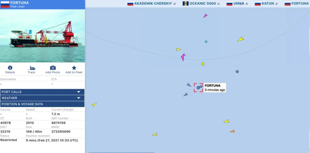 Продолжаем наблюдать за ситуацией, происходящей в Балтийском море на трассе Трубопровода Северный Поток 2.