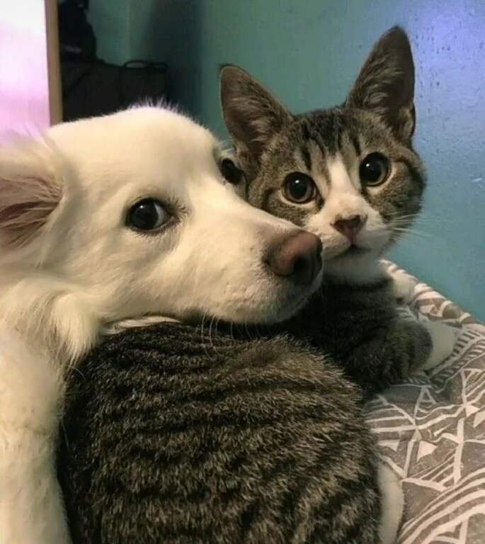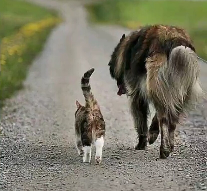 Бытует поговорка': живут как кошка с собакой. Но бывает и наоборот, когда кошка с собакой – лучшие друзья.