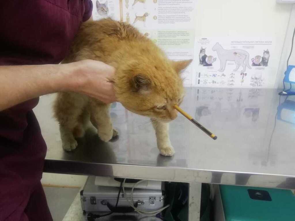 Ветеринар сказал - это первый случай в его практики. Ещё на 1 мм глубже пробил череп или попал в глаз. Просто чудо, что коту так повезло.