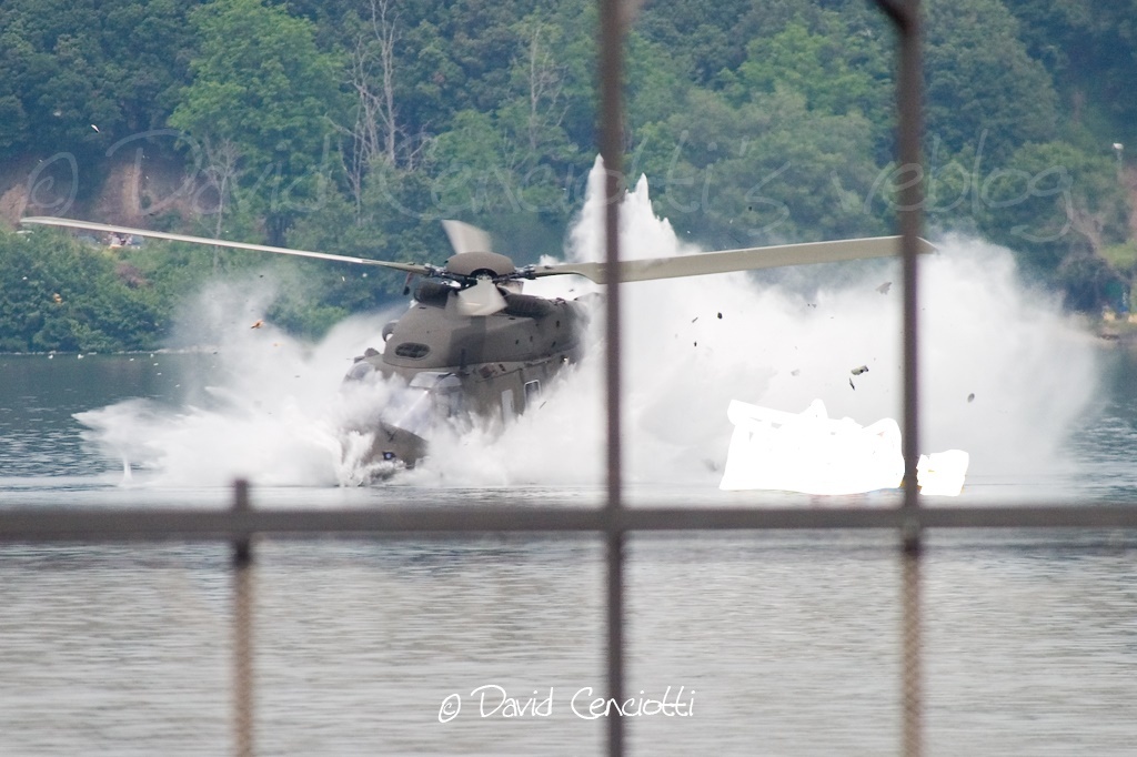 Подходящей площадки для посадки не нашли, и решили просто зависнуть над водой на автопилоте и спуститься по трапу. Так и сделали. Через некоторое время кто-то из членов экипажа, уже находясь в воде увидел, что вертолетный трап уже не спускается в воду, а висит на высоте примерно одного метра. То ли от дуновения ветра, то ли по другой причине вертолет приподняло. Вечер перестал быть томным.