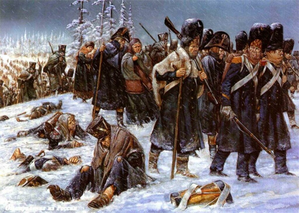 А как же реально замерзшие в русских снегах французские гренадеры? Все действительно ужасающие потери французской армии от мороза и голода были вызваны практически полным отсутствием снабжения едой и теплым зимним обмундированием. Наполеон свято верил, что войска должны кормить себя сами, поэтому не озадачивался проблемами обоза и интендантских служб. Чем и воспользовался М. И. Кутузов, заставив французов отступать по разграбленной ими при наступлении Смоленской дороге.