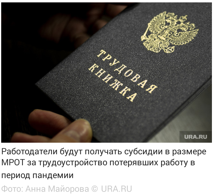 «Работодатели смогут получить субсидию в размере трех минимальных размеров оплаты труда (МРОТ) при трудоустройстве граждан, которые были зарегистрированы в качестве безработных до 1 января 2021 года», — пишет«Коммерсант».
