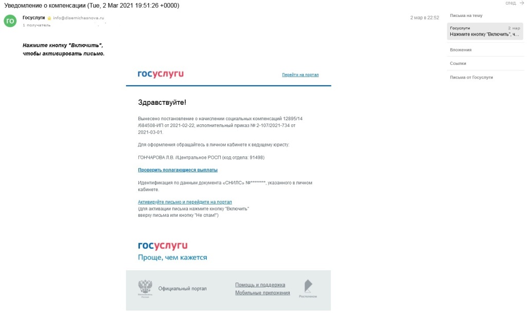 Одна фраза, что надо что-то нажать, чтобы "активировать письмо" чего стоит))). Можно и не читать дальше.