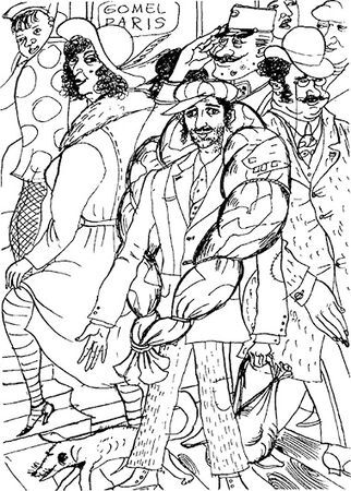 Марик Шагал встретил гомельского родственника с большим энтузиазмом и сразу повёл его в центр культурной жизни ночного Парижа - кафе "Жокей", где познакомил с Кислингом, Паскиным и другими своими знаменитыми друзьями. В 9 вечера пришёл Пикассо, который уже тогда был самой яркой звездой нового модернистского искусства. Шагал начал ожесточенно пинать Абрашу под столом ногой: они притащили сюда ковёр, приведший Марка в восторг, надеясь, что быстро и сказочно разбогатевший испанец купит это произведение советского модерна.