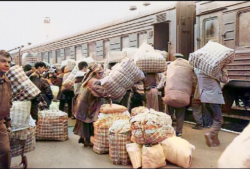 Благодаря свободной торговле вещевые рынки появились по всей стране. Каждый второй в то время закупался ширпотребом в Китае, Вьетнаме, Польше и Турции. В поездах, гигантских тюках, клетчатых сумках, ехало барахло в Россию. Некоторые везучие торговцы раскручивались, открывали точки, затем магазины. Однако успех в 90-е тоже был делом опасным. Большинство же торговцев так и оставалось со своим китайским ширпотребом, проданным в итоге за копейки.