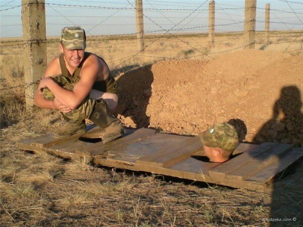 10.30 Строительство объекта "М"/"Ж" закончено. Взвод саперов марширует к месту дислокации, мужик в ошеломлении допивает третью бутылку пива.