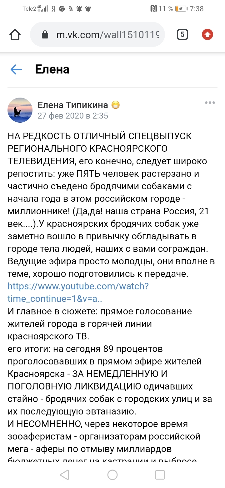 И, не дожидаясь официальных итогов следствия, публикуют свои домыслы будто бы "...в Красноярске мужчина и женщина скончались от собачьих укусов. О нападениях бродячих животных стало известно 22 и 24 февраля."