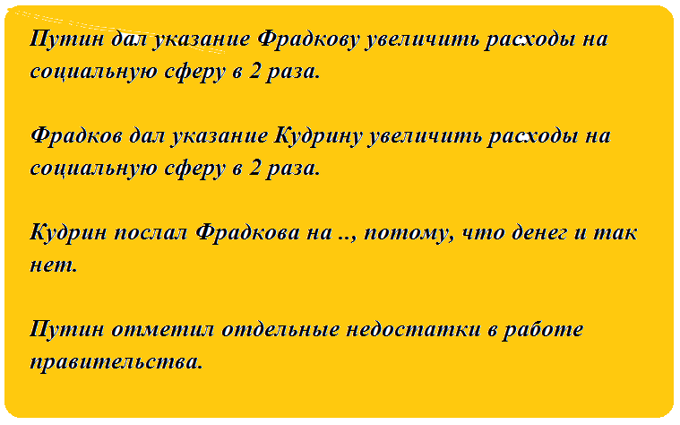 Пришлось уйти на перезагрузку, а в 2012 году вышли майские указы. Их целью было привести Россию в порядок. Но… Если к вам в дом ворвалась банда грабителей, как-то глупо просить их починить кран. А Путин попросил. Точнее приказал. А его послали.