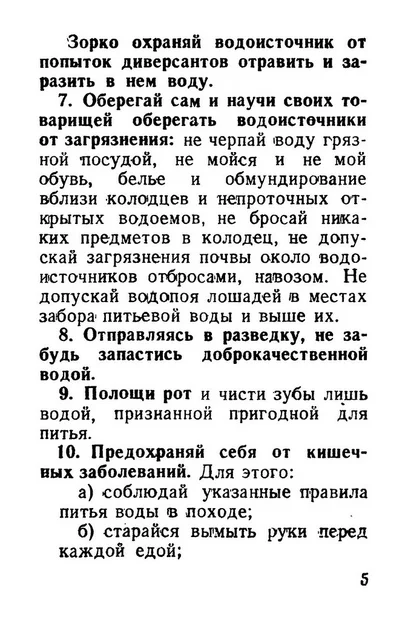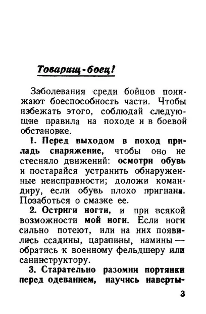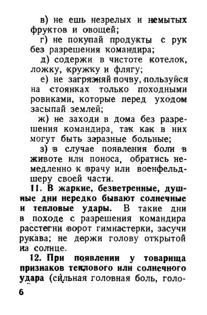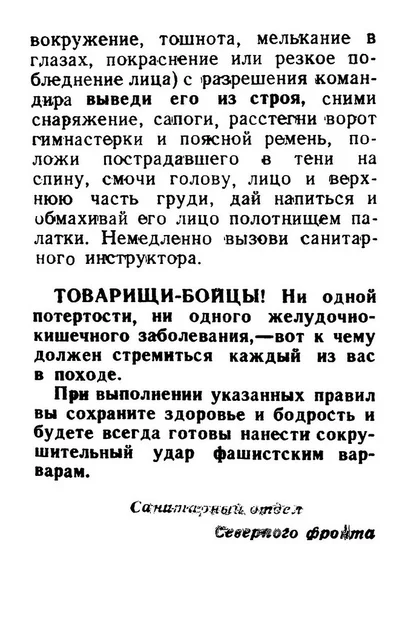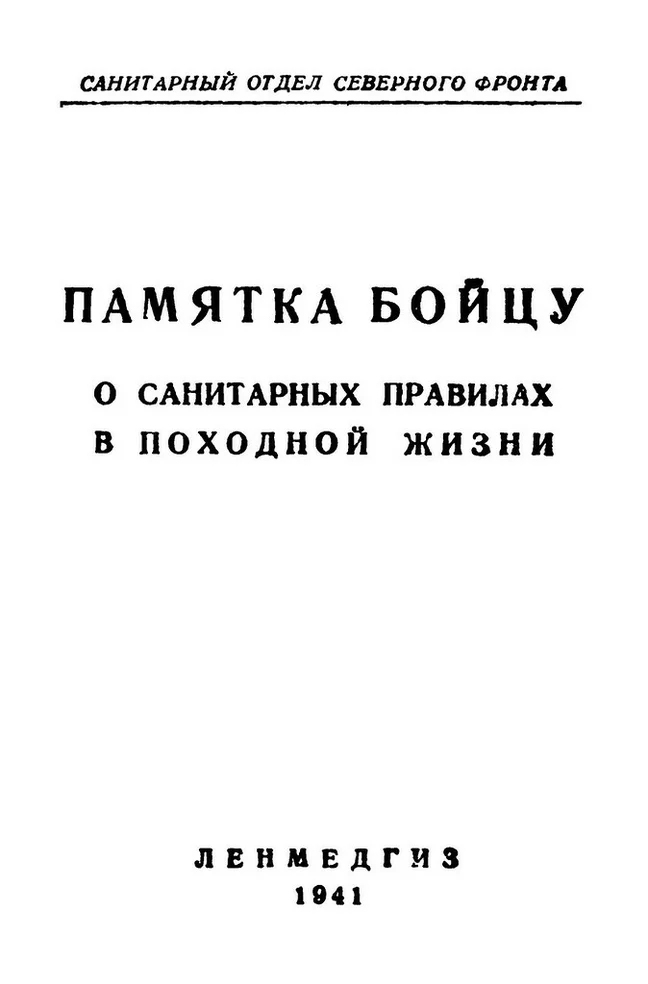И ещё хочется предложить ознакомиться с короткой памяткой на шести страницах: "Памятка бойцу о санитарных правилах в походной жизни, 1941 год."