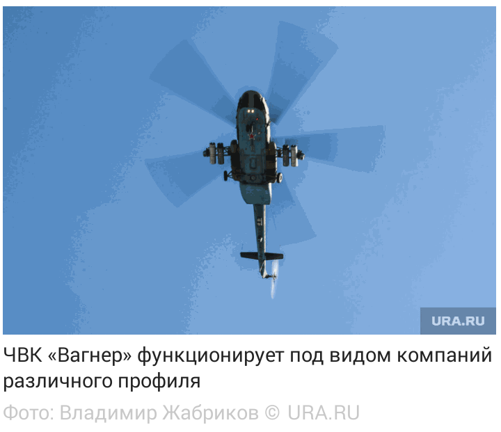 «Хотя Москва официально не признает деятельность „Вагнера“, ЧВК функционирует под вывеской компаний различного профиля, в частности компаний по добыче золота и алмазов, военному обучению или специализирующихся на кибервойне», — пишет агентство Anadolu со ссылкой на Bloomberg.