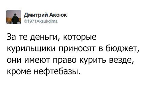 Ну, очень точно, наш закон о вреде курения на балконе...