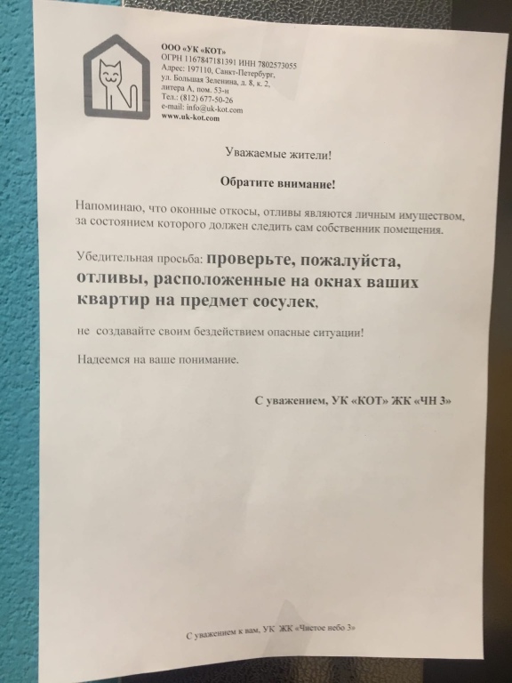Это объявление надо в жилинспекцию направить, хуже для жильцов тоже не будет!