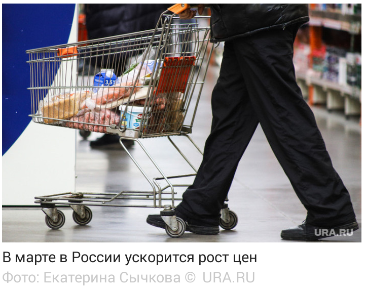 «По оценке Минэкономразвития России, по итогам марта ожидается замедление инфляции в помесячном выражении до 0,5-0,6% м/м. В марте будет пройден пик годовой инфляции, после чего ее темпы начнут постепенно снижаться», — пишет ТАСС.