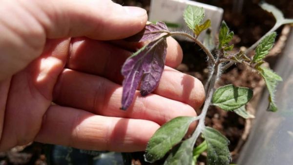 Если сортовой особенностью не предусмотрен такой цвет рассады, как, например у сорта “Бычье сердце”, у синих и черных помидоров, то такое с ваше рассадой случилось либо из-за низкой температуры окружающего рассаду воздуха, либо у растений наблюдается дефицит фосфора.