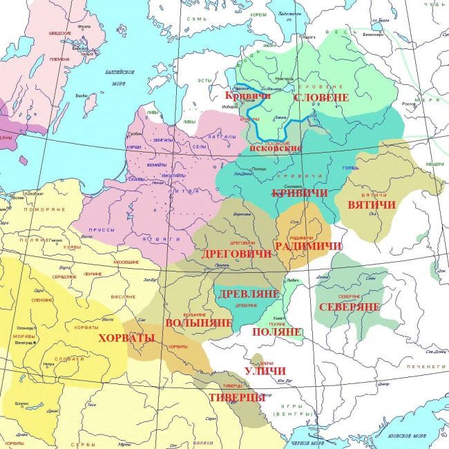 В 8-м веке восточные славяне — русские — объединялись уже не в племена и даже не в племенные союзы (вятичей, волынян, кривичей и др.) во главе с советом вождей и единым военным руководством, князем, в случае войны. Племенные союзы уже объединялись в коалиции, вроде «Дулебов» — волынян, древлян, хорватов. «Дулебы» это экзоэтноним, внешнее (германское) название. Т. е. именно соседи видели и зафиксировали это объединение. Явный надплеменной союз создали словене ильменские и псковские кривичи. Такой же характер носило объединение вятичей, радимичей и северян. Это четвертое, пятое и шестое русские государства до Рюрика.