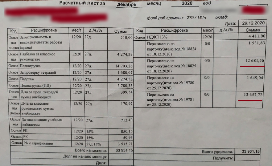 В большинстве случаев педагоги выкладывают информацию о своей зарплате анонимно, однако некоторые уже говорят о проблеме и открыто. Например, учитель из Омска Анна К. показала свой заплатный квиток за январь. В общей сложности за ставку в 20 часов вместе со стимулирующими выплатами педагог получила на руки после налогового вычета 15 393 рубля. Подобная история происходит во многих регионах страны.