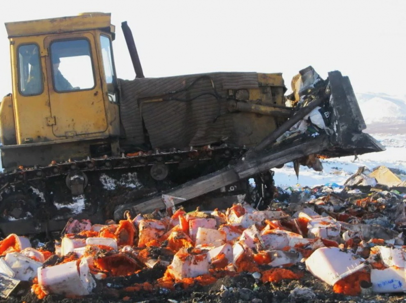 Таможенники поздравили женщин с 8 марта, раздавив на бульдозере партию санкционных цветов