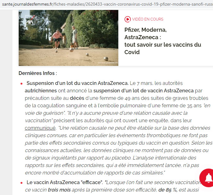 Международный анализ отчетов о побочных эффектах, который был немедленно начат, еще не показал накопления сообщений о подобных случаях." Вакцина AstraZeneca "эффективна". "При проведении второй вакцинации этой вакциной через три месяца после первой дозы ее эффективность, 85 %, так же важна, как и другие вакцины",-сказал профессор Анн-Клод