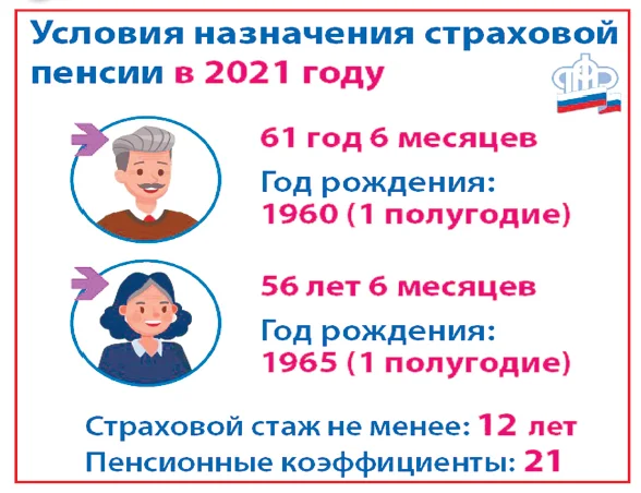 При этом условия выхода на пенсию в 2021-м и в 2022 году будут разными. Сейчас для этого требуется минимум 12 лет страхового стажа и минимум 21 пенсионный балл. В следующем году уже минимум 13 лет стажа и минимум 23,4 пенсионного балла.