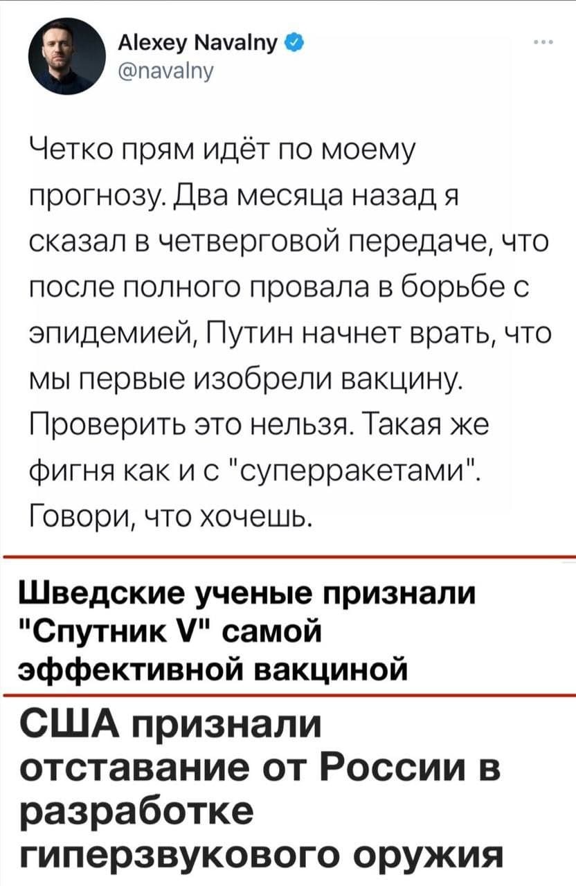 Весь мир признал российскую вакцину, а США признали отставание по ракетостроению.