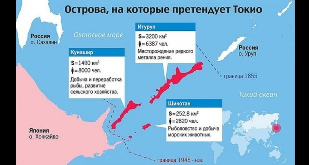 Россия и Япония не заключили мирный договор по итогам Второй мировой войны из-за затянувшегося спора о Южных Курилах. Состояние войны между двумя странами было официально прекращено в 1956 г., после чего СССР и Япония возобновили в соответствии с Московской декларацией дипломатические отношения. Согласно японской позиции, Россия должна передать Японии четыре южных острова Курильской гряды. Москва же признает декларацию СССР 1956 г., где говорится о возможности передачи двух островов после заключения мирного договора.