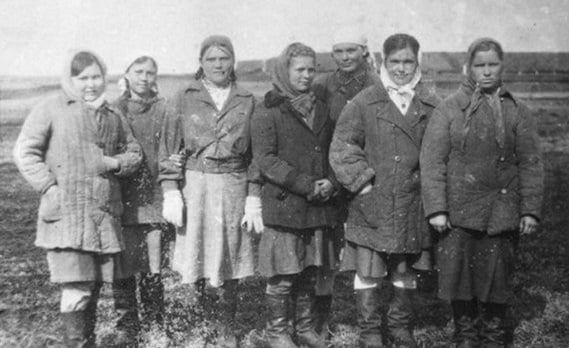 На фото - узницы знаменитого советского концлагеря АЛЖИР - неофициальное название Акмолинского лагеря жен изменников Родины или официально - 17-е женское лагерное специальное отделение Карагандинского исправительно-трудового лагеря.