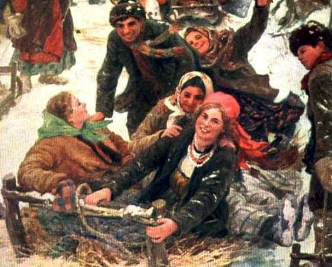 В этот день люди пытались помочь солнцу победить зиму. Для этого на санях катались по селу по часовой стрелке, имитируя движение небесного светила.