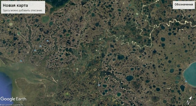 Из любопытства открыл карту Ямала с изображением со спутника, так там, похоже, его постоянно пучит. Весь в круглых озерах.