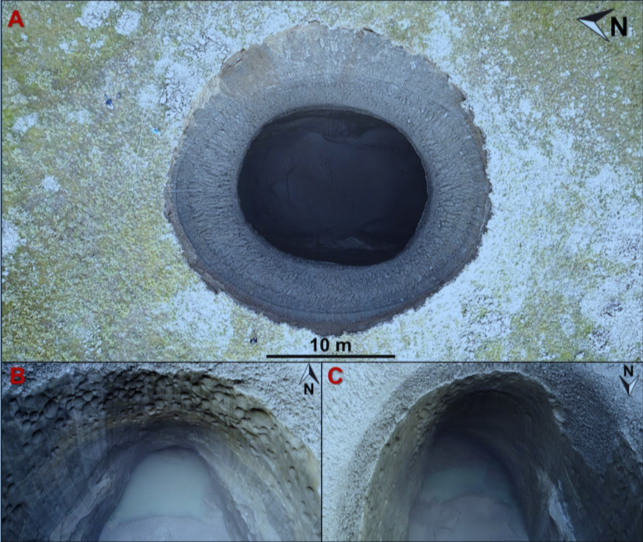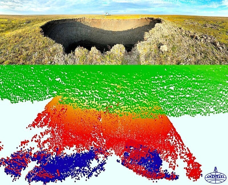 В середине июля прошлого года новый провал увидел с вертолета директор Российского центра освоения Арктики Андрей Умников. Буквально через месяц бездну уже исследовала группа ученых из Института проблем нефти и газа РАН и Сколковского института науки и технологий. В их число входили сам Василий Богоявленский, а также его сын – горный инженер-геолог Игорь Богоявленский. Последний как раз и осуществлял аэрофотосъемку с помощью дрона. Аппарат погружался на глубину около 15 метров, и для управления им приходилось лежать буквально на краю пропасти глубиной более 30 метров. Полученные снимки позволили построить 3D-модель С 17 и воссоздать картину его образования.