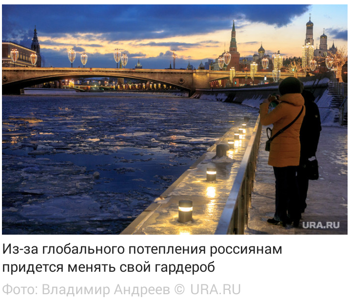 «В ближайшие 10-20 лет, скорее всего, будет глобальное потепление. Оно будет небольшое и плавное, а также будет характеризоваться перепадами температур. Мы должны быть готовы к резким изменениям погодных условий. Поэтому одежда должна быть более универсальной: пригодной одновременно для дождя, снега, ветра и метели», — рассказал климатолог телеканалу «Москва 24».